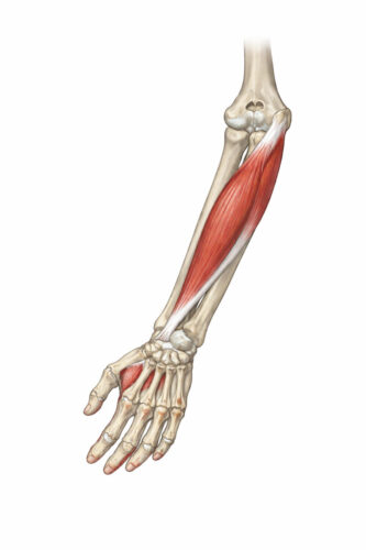 手首の安定に重要な橈側手根屈筋(とうそくしゅこんくっきん)という筋肉に注目しています。