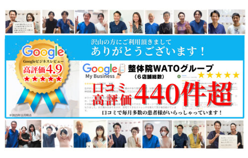 【口コミ多数・お客様の声を掲載】 (腰痛/慢性腰痛/ぎっくり腰/坐骨神経痛/脊柱管狭窄症/椎間板ヘルニア/腰椎すべり症/膝痛/股関節痛/首痛/ストレートネック/膝痛/背中の痛み/頭痛/肩こり/五十肩/痺れ/手首の痛みなど) |